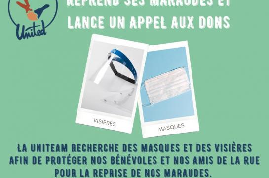 Nous reprenons enfin nos maraudes ☺️ Afin de protéger au mieux nos bénévoles et nos Amis de la Rue, nous lançons une grande collecte de masques / visières. Nous avons besoin de vous ❤️ Pour les dons de masques/visières :...